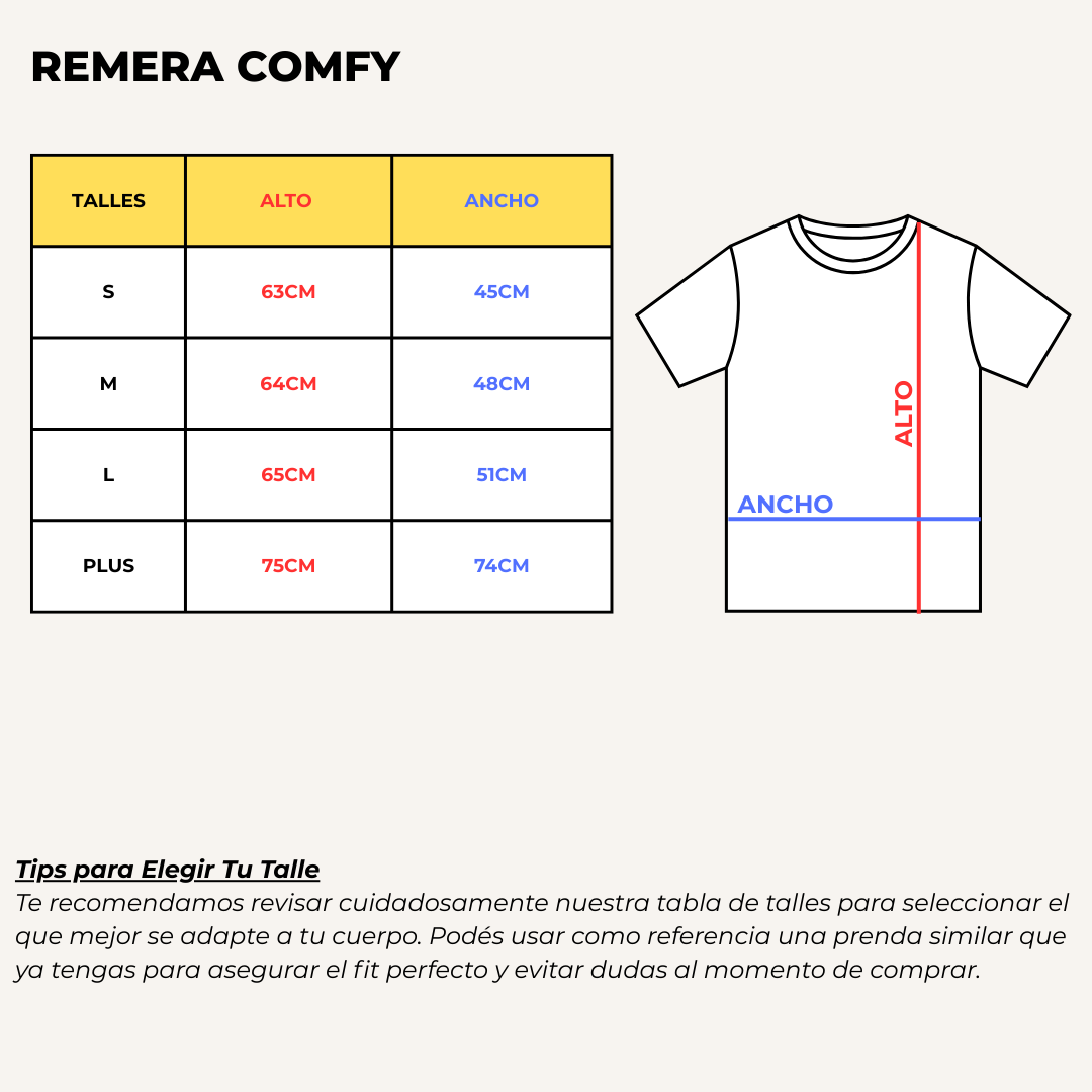 Chequéa con atención nuestra tabla de talles para encontrar el que mejor se adapte a vos. Podés tomar como referencia una prenda similar que ya tengas para mayor seguridad y evitar dudas al momento de elegir.